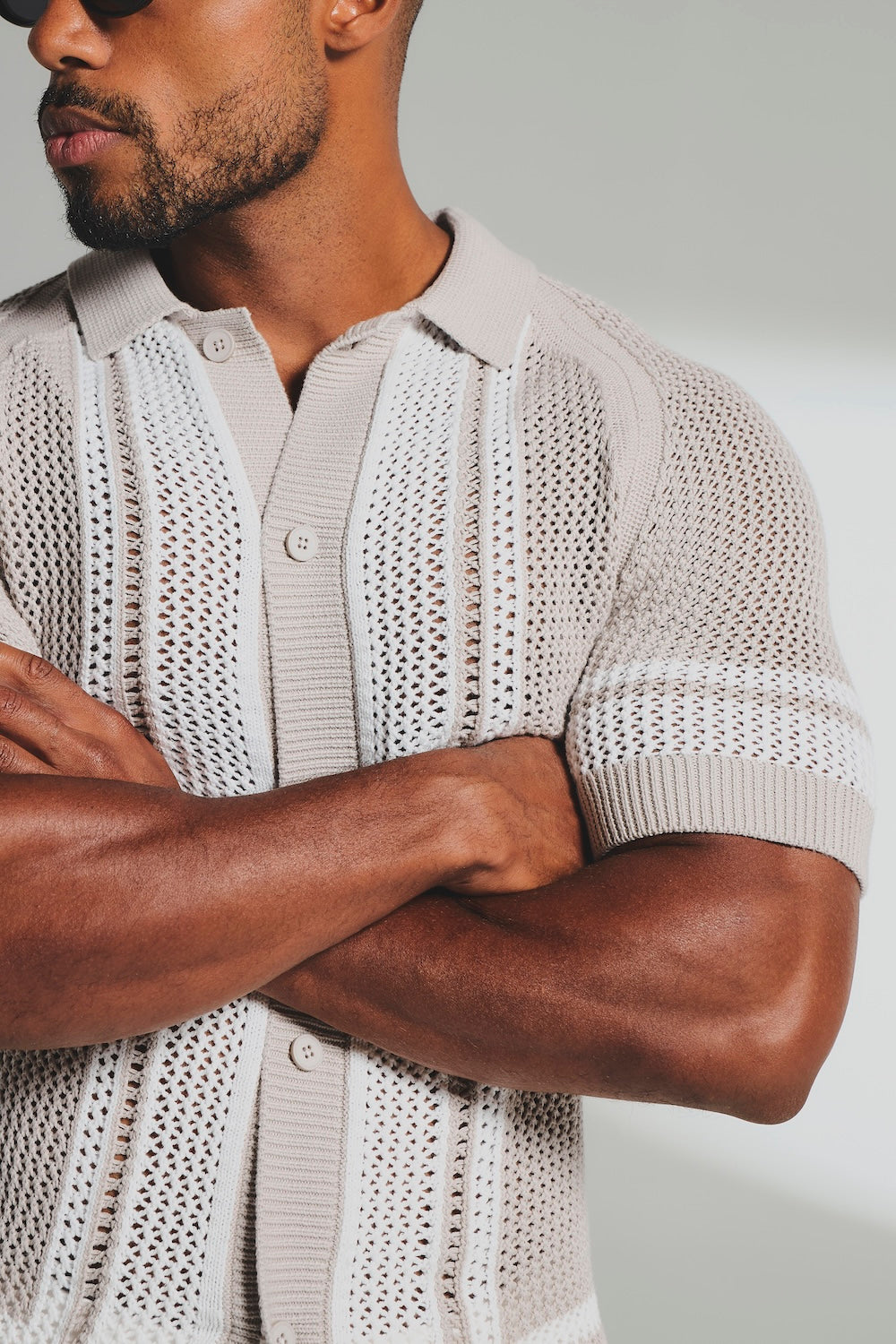 Finally—a shirt that makes a statement without overcomplicating your look. Designed for men with broader shoulders and a narrower waist, this Muscle Fit shirt enhances the chest and arms while tapering through the body. The crochet knit keeps it breathable, while the contrast colour block design creates a bold, modern look. Raglan sleeves ensure ease of movement and help define the arms.