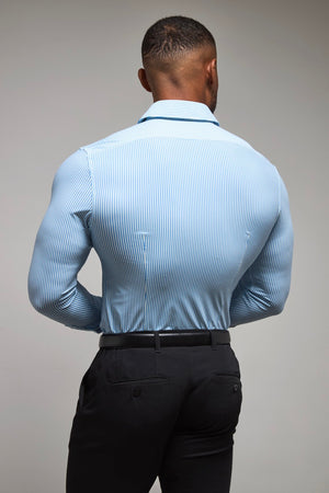 Elevate your office wardrobe with the Striped Stretch Formal Shirt. Featuring a sophisticated cutaway collar and fine stripe design, it exudes understated elegance.This shirt boasts a crease-free, wrinkle-resistant finish—perfect for all-day wear. The True Muscle Fit enhances your physique, comfortably shaping your muscles and defining your chest for a tailored look. Minimal stitching ensures a refined, classy aesthetic that transitions seamlessly from desk to dinner.