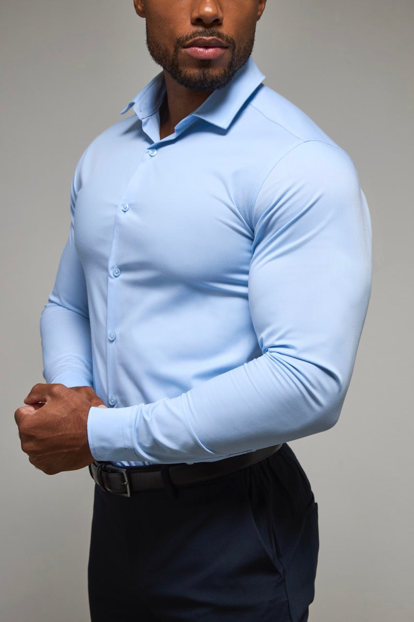 The Dress Shirt is the epitome of traditional formal attire. Crafted from luxurious stretch fabric and tailored to a True Muscle Fit, it elevates this classic dress shirt to unparalleled levels of comfort and style. Designed to accommodate a broad chest and shoulders while tapering at the waist, it guarantees a flawless fit every time. The minimal stitching and detailing helps to achieve a sleek, stylish look.