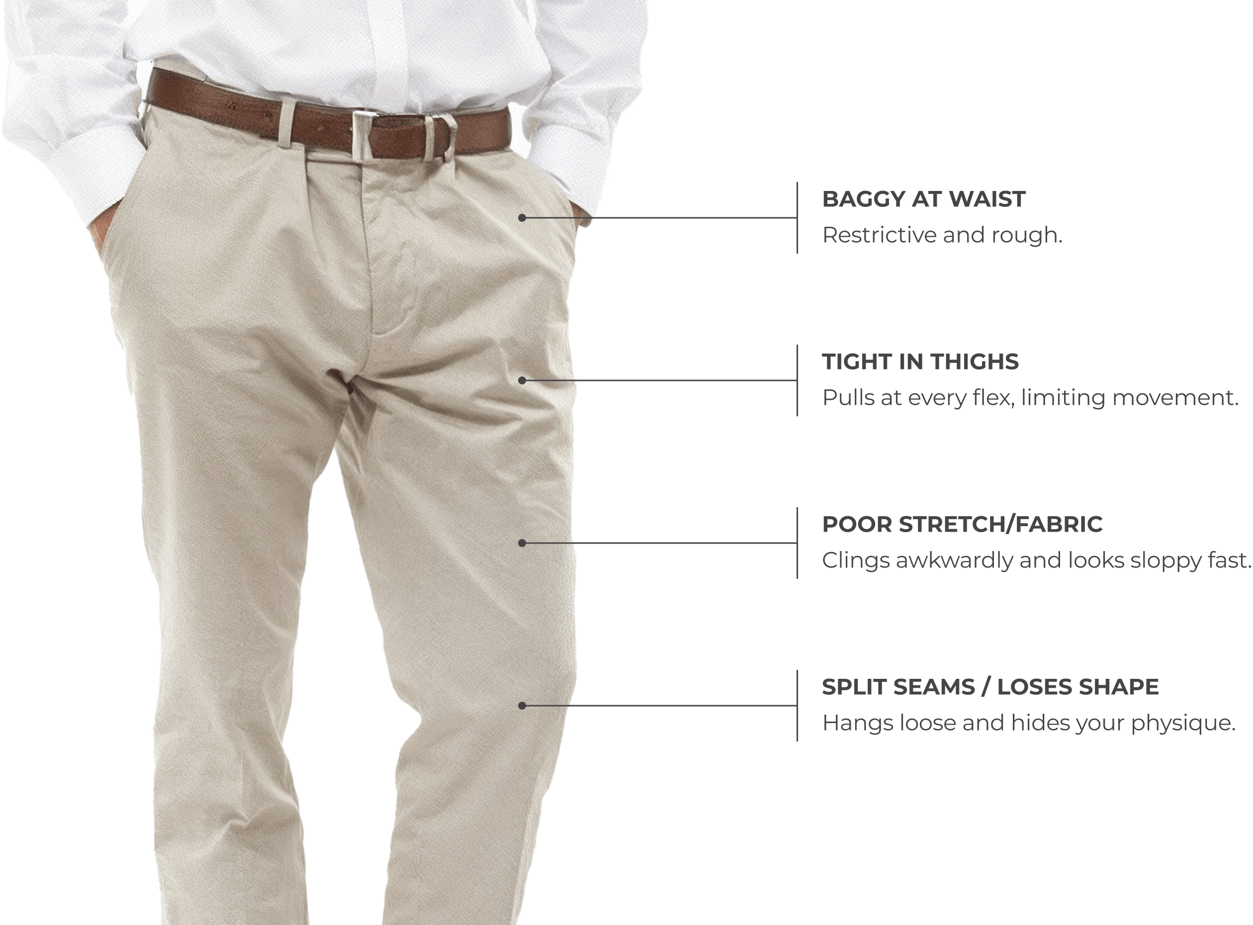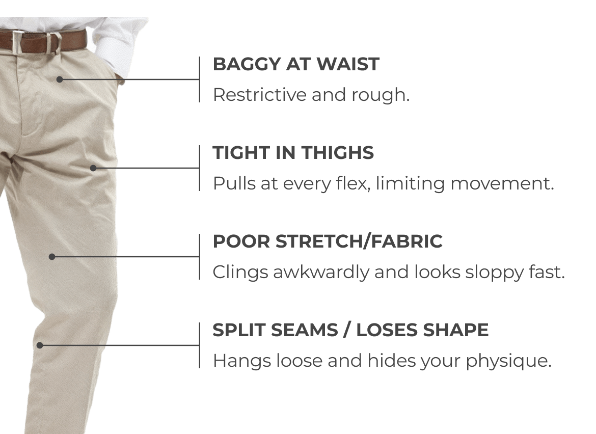 Most trousers compromise comfort or style - forcing you to size up and settle.
