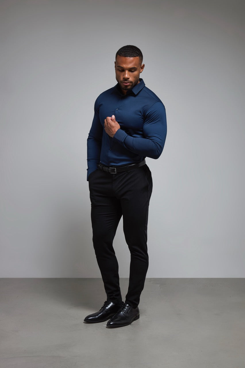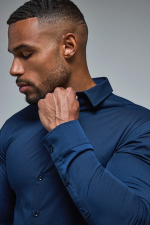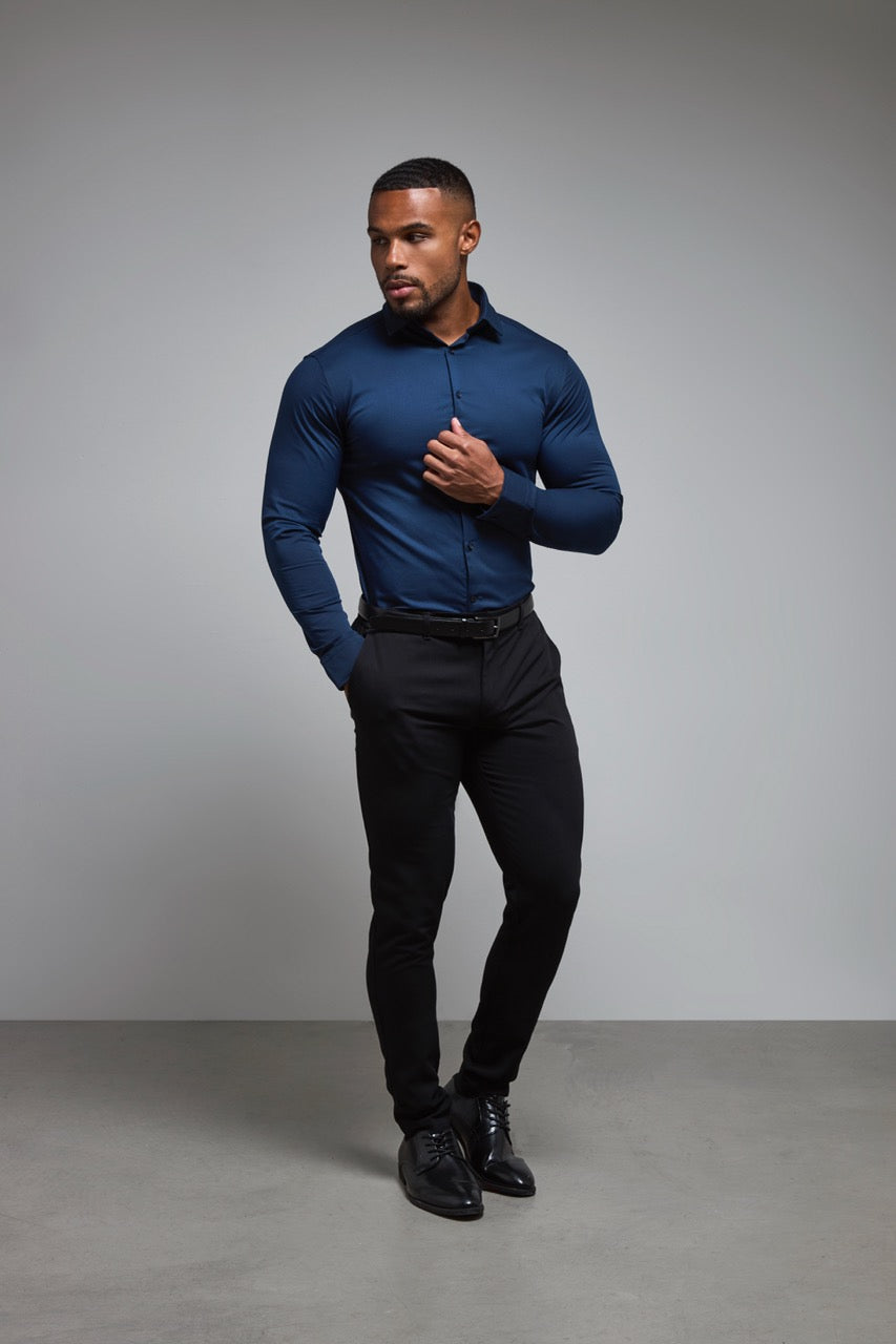 The Dress Shirt is the epitome of traditional formal attire. Crafted from luxurious stretch fabric and tailored to a True Muscle Fit, it elevates this classic dress shirt to unparalleled levels of comfort and style. Designed to accommodate a broad chest and shoulders while tapering at the waist, it guarantees a flawless fit every time. The minimal stitching and detailing helps to achieve a sleek, stylish look.