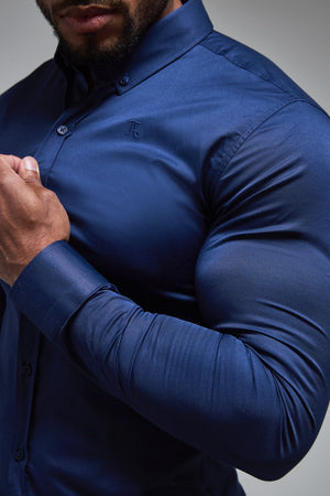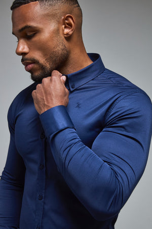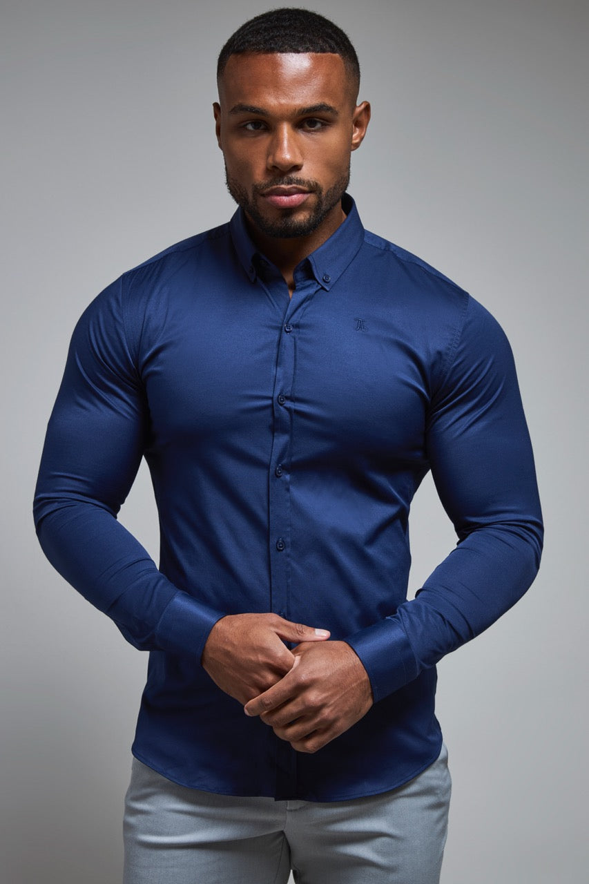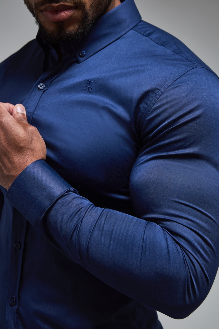 Uniquely designed with our 'True Muscle Fit', this highly sought-after shirt is crafted from improved luxurious stretch fabric, meant to reduce the creasing level for an always-fresh look. The buttoned-down collar and our signature emblem embroidered on the chest add a casual flair to your formal wear for a relaxed fit.