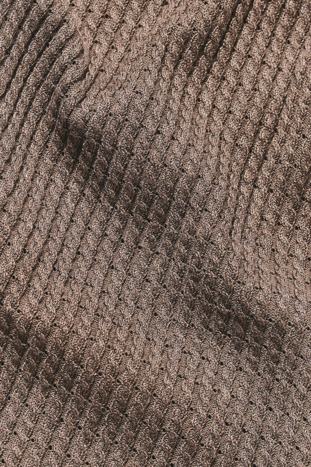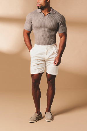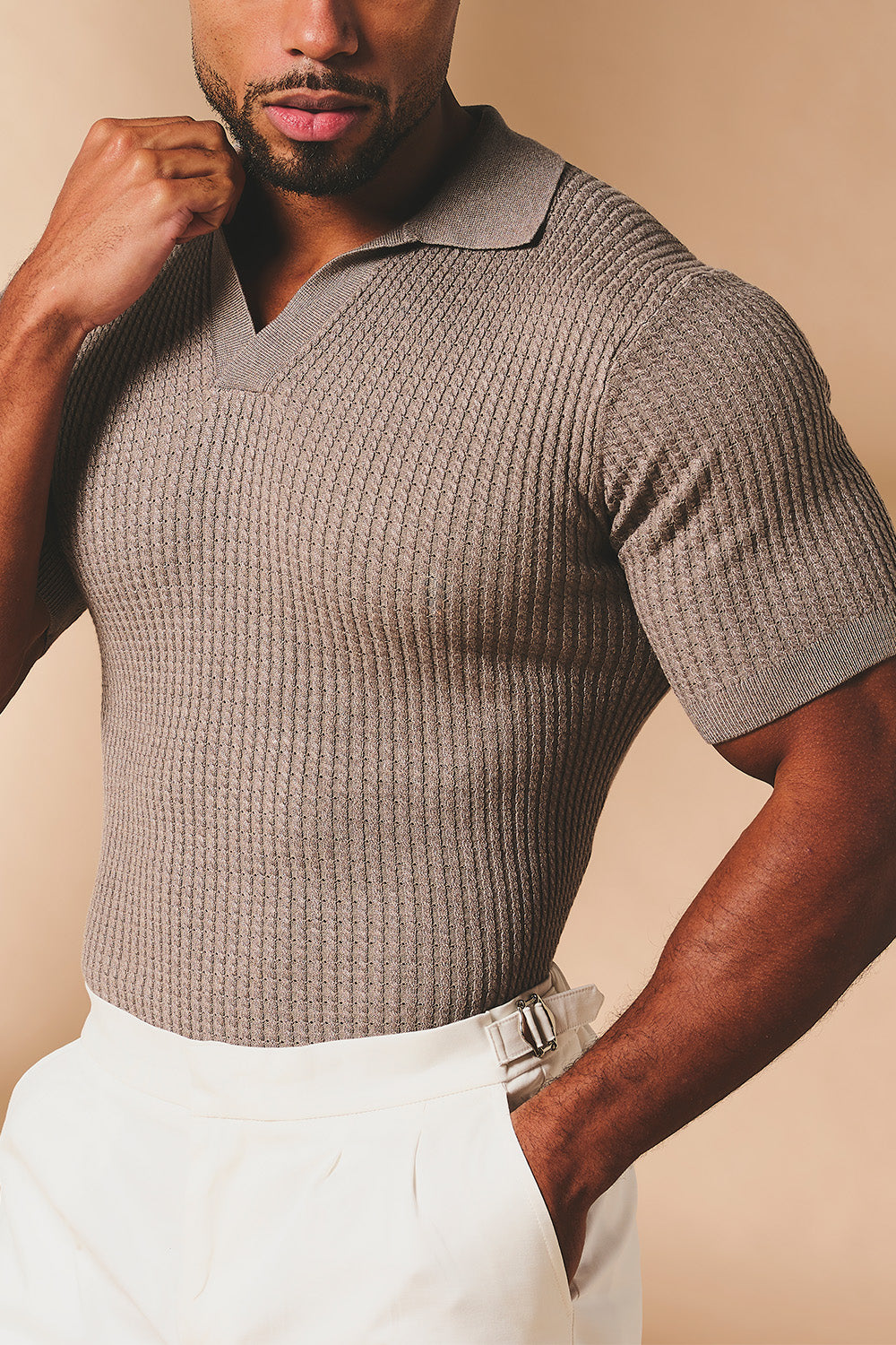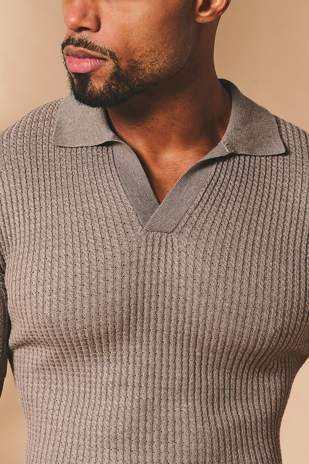 Vertical Stripe Knitted Open Collar Polo Shirt in Mole